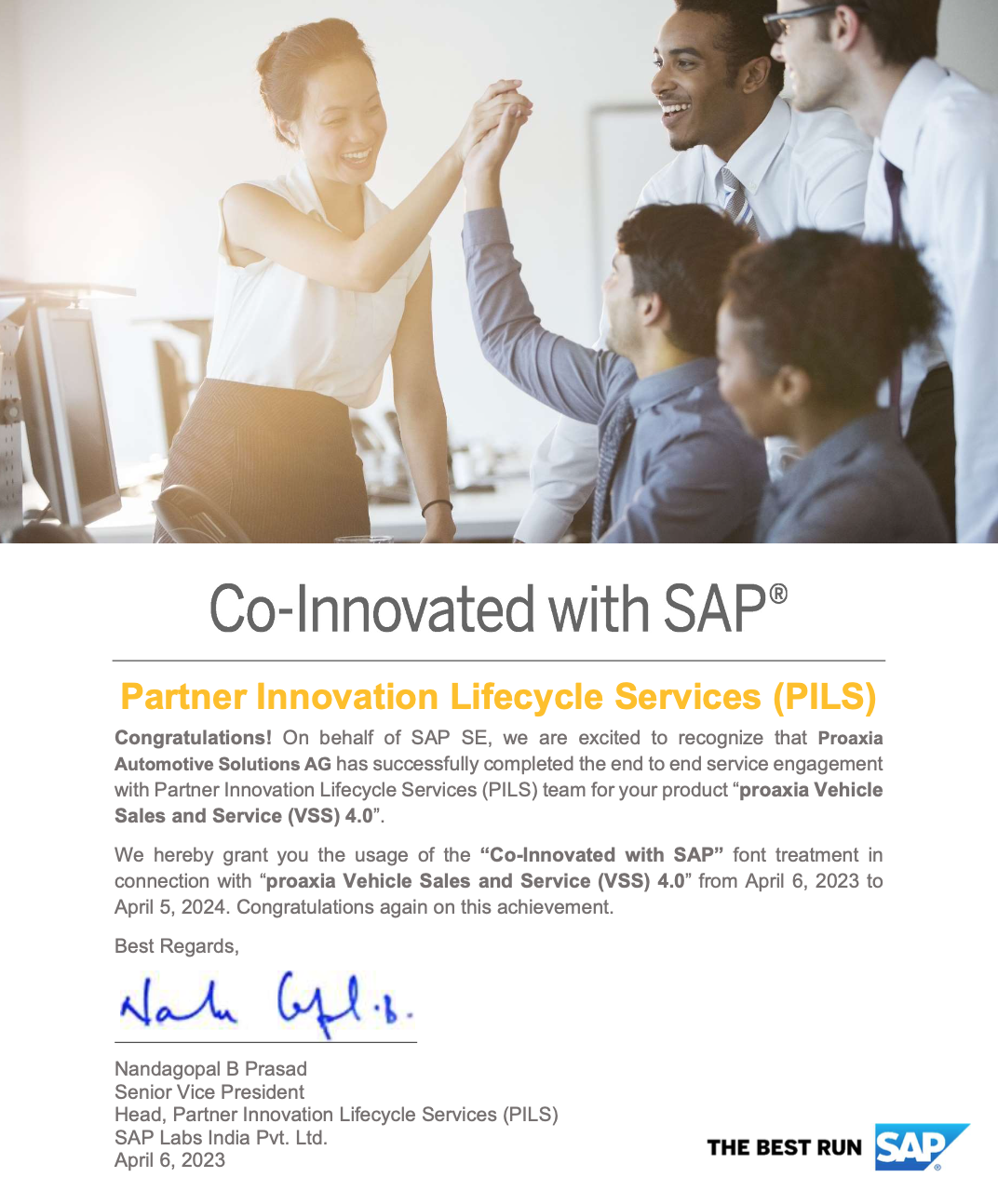 proaxia Automotive Solutions AG has succesfully completed the end to end service engagement with Partner Innovation Lifecycle Services (PILS) team for it´s product „proaxia Vehicle Sales and Service (VSS) 4.0“.