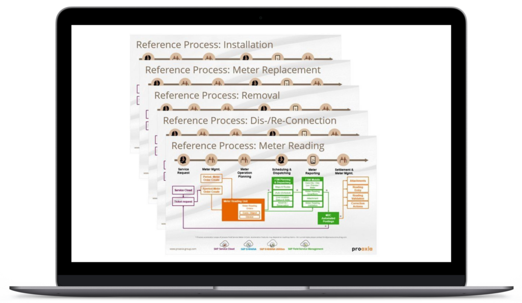 proaxia Meter-2-Cash ensures a seamless process journey through all stages as above accelerating reference processes such as installation, replacement, removal of devices or dis- & re-connections as well as high-volume meter reading scenarios.