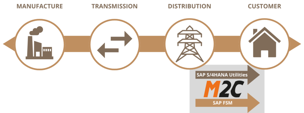 M2C accelerates the intuitive SAP FSM user interface with relevant utility content. Job planning by Map & Gantt are featuring locations, spatial for easy scheduling. Mobile Clients allow offline insights to technical object structures & connections, entry guidance with validation.