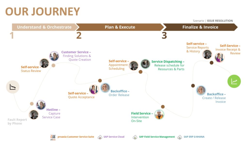 proaxia Seamless Service is the comprehensive end-to-end solution that optimises and digitalises the service processes of manufacturing companies. The combination of self-service, support, back office and field service in a continuous process improves the overall performance of the service organisation.